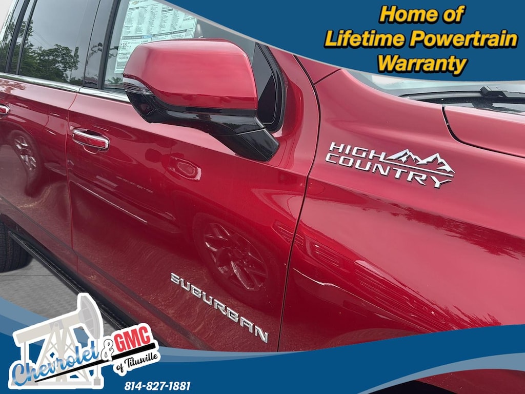 At Chevrolet and GMC of Titusville we believe that your car buying experience should be an enjoyable one. Its our goal to exceed your expectations in every way so that each and every time your family needs a car or truck, you know exactly where to go. We set out to accomplish that by staying firmly rooted in our values of integrity and professionalism in order to provide you with a truly superior customer service experience. A proud member of the Dean Auto Group, were sure youll find the quality new or used vehicle you want from the manufacturers you love! Find exactly what youre looking for at a price that makes you smile... This 2025 Chevrolet Suburban High Country has a beautiful Radiant Red Tintcoat exterior with Jet Black interior. This vehicle has been thoroughly inspected by our factory trained service technicians and prepped for immediate delivery. IMPORTANT PACKAGE INFORMATION Advanced Trailering PackageHitch View with Pan/zoom Image AdjustmentSmart Trailer Integration IndicatorBlind Zone Steering Assist with TraileringTechnology & Entertainment Package ($2,245 value)Rear Seat Media SystemMax Trailering PackageHill Descent ControlIntegrated Trailer Brake Controller2-Speed Active Electronic Autotrac Transfer CaseExtra Capacity Cooling SystemAdvanced Security PackageSelf-Powered Horn Theft-Deterrent Alarm SystemVehicle Inclination SensorVehicle Interior Movement SensorGlass Breakage SensorTechnology PackageAutoSense Hands-Free Power LiftgatePreferred Equipment Group 3LZMemory Settings8-Way Power Front Passenger Seat Adjuster3rd Row 60/40 Power-Folding Split-BenchPower Release 2nd Row Bucket Seats4-Way Power Driver Lumbar Seat Adjuster4-Way Power Front Passenger Lumbar Seat AdjusterChrome Door Handles with Body-Color StripBright Front and Rear Door Sill PlatesPower-Sliding Center Floor ConsoleInside Rearview Auo-Dimming Rear Camera MirrorHeated Power-Adjustable Outside MirrorsWireless Phone ChargingHeated Driver and Front Passenger SeatsHeated 2nd Row Outboard SeatsHeated Steering WheelPerforated Heated and Ventilated Seats6.2L EcoTec3 V8 EngineDual Exhaust SystemPower Tilt and Telescopic Steering ColumnFront LED Fog LampsLED Tail LampsRear Power LiftgateLED Headlamps with LED Daytime Running LampsUniversal Home RemoteBose 10-Speaker Surround with CenterPoint15" Diagonal Multi-Color Head-Up Display275/50R22SL AS BW TiresMagnetic Ride Control SuspensionPremium Liner Protection PackageFirst and Second Rows Premium Floor LinersAll-Weather Cargo Mat3rd Row All-Weather Floor LinersEnhanced Trailer ViewTrailering Assist GuidelinesTrailer Camera ProvisionsHigh Country Deluxe ($4,335 value)Power-Retractable Assist StepsDual-Pane Power Panoramic SunroofAir Ride Adaptive Suspension Safety and Security Forward collision mitigation - Forward thinking. You look away for just a second and suddenly the vehicle in front of you has stopped. That's when the forward collision mitigation system comes to life. When it senses an impending impact, it will activate a combination of features to help prevent or reduce the severity of an accident. Forward collision mitigation is always looking ahead. Pedestrian impact prevention - An extra step toward safety. Pedestrians don't always stop, look, and listen, but with Pedestrian Impact Prevention, your vehicle is equipped to better see them and avoid them. This system constantly monitors the road ahead to identify and track pedestrians. It projects that image to an interior display screen, AND should an impact become likely, Pedestrian impact prevention takes steps to avoid a collision. Hands-off cruise control - Set it and forget it. Road trips used to be stressful. Cruise control only managed speed, but not distance or safety. Now with hands-off cruise control simply set your desired speed and let sensor technology maintain a safe distance between you and surrounding vehicles with minimal steering input from you. It slows you down; speeds you up and even keeps you in your own lane. Meet your ultim