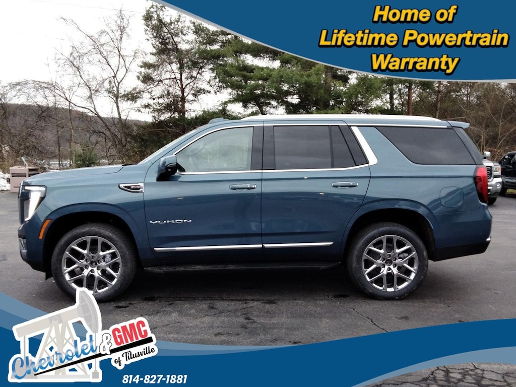 At Chevrolet and GMC of Titusville we believe that your car buying experience should be an enjoyable one. Its our goal to exceed your expectations in every way so that each and every time your family needs a car or truck, you know exactly where to go. We set out to accomplish that by staying firmly rooted in our values of integrity and professionalism in order to provide you with a truly superior customer service experience. A proud member of the Dean Auto Group, were sure youll find the quality new or used vehicle you want from the manufacturers you love! Find exactly what youre looking for at a price that makes you smile... This 2026 GMC Yukon Elevation has a beautiful Downpour Metallic exterior with Jet Black interior. This vehicle has been thoroughly inspected by our factory trained service technicians and prepped for immediate delivery. IMPORTANT PACKAGE INFORMATION Max Trailering PackageHill Descent ControlIntegrated Trailer Brake Controller2-Speed Electronic Autotrac Active Transfer CaseHitch ViewSmart Trailer Integration IndicatorBlind Zone Steering Assist with TraileringExtra Capacity Cooling SystemElevation Premium Package ($2,710 value)Dual-Pane Panoramic Power SunroofRear Seat Media SystemTechnology Package4-Way Power Driver Lumbar Seat Adjuster4-Way Power Front Passenger Lumbar Seat AdjusterInside Rearview Auo-Dimming Rear Camera MirrorPerforated Heather and Ventilated Driver and Front Passenger Seats15" Diagonal Multi-Color Head-Up DisplayPreferred Equipment Group 4SAFloor Liner Package ($495 value)All-Weather Cargo Mat1st and 2nd Rows All-Weather Floor Liners3rd Row All-Weather Floor Liners Safety and Security Forward collision mitigation - Forward thinking. You look away for just a second and suddenly the vehicle in front of you has stopped. That's when the forward collision mitigation system comes to life. When it senses an impending impact, it will activate a combination of features to help prevent or reduce the severity of an accident. Forward collision mitigation is always looking ahead. Pedestrian impact prevention - An extra step toward safety. Pedestrians don't always stop, look, and listen, but with Pedestrian Impact Prevention, your vehicle is equipped to better see them and avoid them. This system constantly monitors the road ahead to identify and track pedestrians. It projects that image to an interior display screen, AND should an impact become likely, Pedestrian impact prevention takes steps to avoid a collision. Hands-off cruise control - Set it and forget it. Road trips used to be stressful. Cruise control only managed speed, but not distance or safety. Now with hands-off cruise control simply set your desired speed and let sensor technology maintain a safe distance between you and surrounding vehicles with minimal steering input from you. It slows you down; speeds you up and even keeps you in your own lane. Meet your ultimate co-pilot with hands-off cruise control. Super Cruise hands-on cruise control with lane changeTechnology and Telematics Apple CarPlay/Android Auto smart device wireless mirroring ENGINE, 5.3L ECOTEC3 V8, DOWNPOUR METALLIC We value-price our vehicles to assure our customers get an easy & notable car buying experience. With every New & Pre-Owned purchase you become part of our Chevrolet and GMC of Titusville family, and being a family member has benefits: 1. Complimentary PA State Inspections for the Life of the Vehicle (dealer covers inspection fee, customer responsible for applicable sticker fees) 2. $100 gift card 3. Lifetime Powertrain Warranty (some exclusions apply). 4. Our service department offers complimentary 21-point inspection and safety check for the life of the vehicle with ANY service appointment. *Valid for vehicles purchased after 1/1/2025. **Offers not redeemable for cash. Due to heavily discounted market based pricing, vehicles are selling more quickly than our website updates. To verify availability on this vehicle please contact our client care team at 814