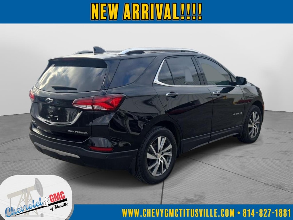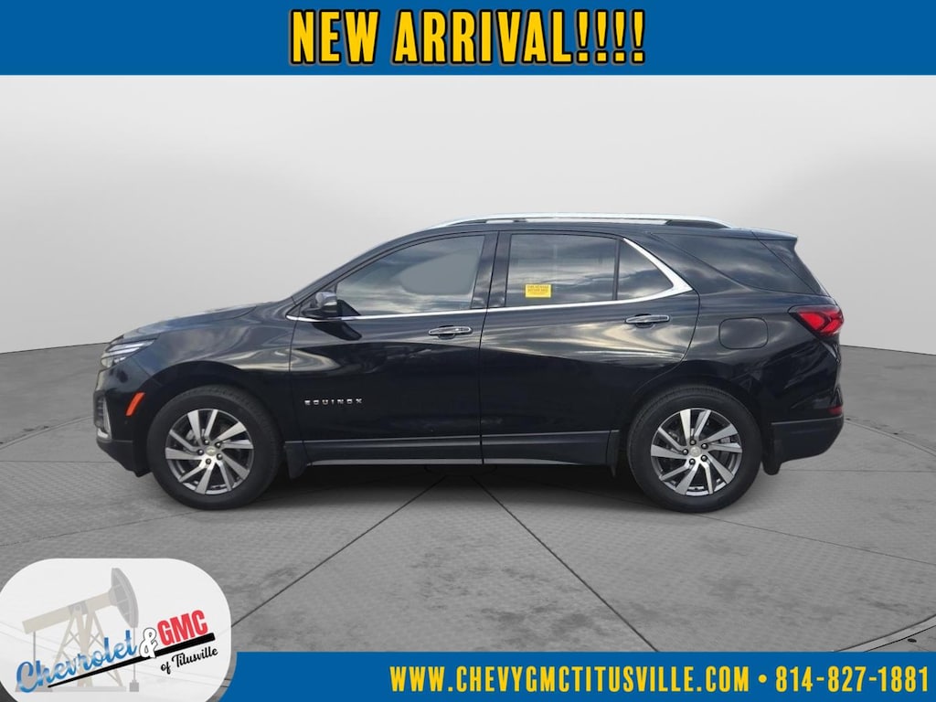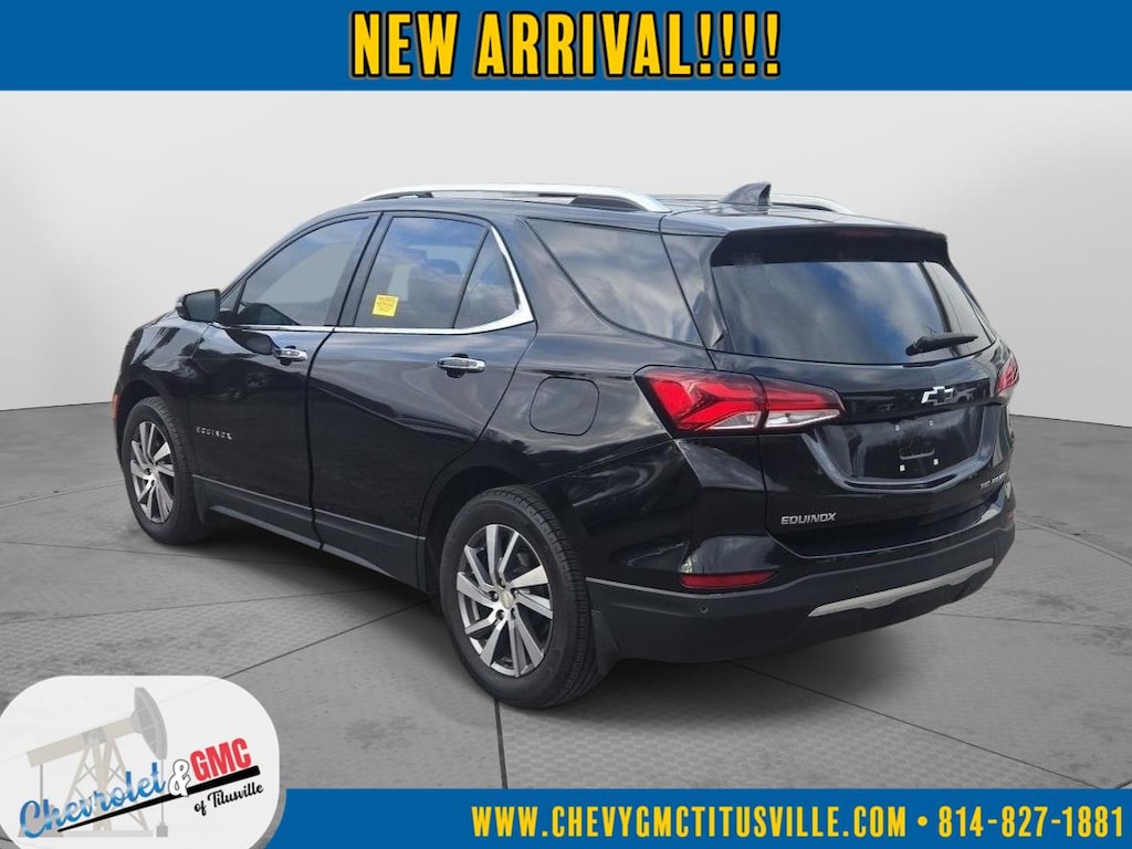 At Chevrolet and GMC of Titusville we believe that your car buying experience should be an enjoyable one. Its our goal to exceed your expectations in every way so that each and every time your family needs a car or truck, you know exactly where to go. We set out to accomplish that by staying firmly rooted in our values of integrity and professionalism in order to provide you with a truly superior customer service experience. A proud member of the Dean Auto Group, were sure youll find the quality new or used vehicle you want from the manufacturers you love! Find exactly what youre looking for at a price that makes you smile... This 2023 Chevrolet Equinox Premier has a beautiful Mosaic Black Metallic exterior with Jet Black interior. This vehicle has 31,811 miles has been thoroughly inspected by our factory trained service technicians and has been fully reconditioned for immediate delivery. We're happy to provide this Equinox's CARFAX vehicle history report upon request as well. Carfax No Accidents! Carfax One Owner! IMPORTANT PACKAGE INFORMATION Confidence and Convenience II Package ($1,745 value)Driver Convenience II PackageFront Passenger 8-Way Power Seat AdjusterHeated Rear Outboard Seating PositionsVentilated Driver SeatVentilated Front Passenger SeatPreferred Equipment Group 1LZFloor Liner Package ($335 value)Integrated Cargo LinerAll-Weather Floor LinersInfotainment II Package ($1,125 value)Chevrolet Infotainment 3 Plus System Radio with NavigationBose Premium 7-Speaker Audio System FeatureDriver Confidence III PackageAdaptive Cruise ControlAutomatic Front and Rear Parking AssistHD Surround Vision Safety and Security Forward collision mitigation - Forward thinking. You look away for just a second and suddenly the vehicle in front of you has stopped. That's when the forward collision mitigation system comes to life. When it senses an impending impact, it will activate a combination of features to help prevent or reduce the severity of an accident. Forward collision mitigation is always looking ahead. Pedestrian impact prevention - An extra step toward safety. Pedestrians don't always stop, look, and listen, but with Pedestrian Impact Prevention, your vehicle is equipped to better see them and avoid them. This system constantly monitors the road ahead to identify and track pedestrians. It projects that image to an interior display screen, AND should an impact become likely, Pedestrian impact prevention takes steps to avoid a collision.Technology and Telematics Apple CarPlay/Android Auto smart device wireless mirroring Wireless Apple CarPlay/Wireless Android Auto smart device wireless mirroring Mobile hotspot - WiFi on the fly. Connect your devices to the Internet through your vehicles private mobile hotspot and take the internet wherever your journey takes you, without eating up your data allowance. Find the hotspot with mobile hotspot. EMISSIONS, FEDERAL REQUIREMENTS, ENGINE, 1.5L TURBO DOHC 4-CYLINDER, SIDI, VVT, TRANSMISSION, 6-SPEED AUTOMATIC, ELECTRONICALLY-CONTROLLED WITH OVERDRIVE, AXLE, 3.87 FINAL DRIVE RATIO, WHEELS, 18" (45.7 CM), ALUMINUM, TIRES, P225/60R18 ALL-SEASON BLACKWALL, MOSAIC BLACK METALLIC, SEATS, FRONT BUCKET, JET BLACK, PERFORATED LEATHER-APPOINTED SEAT TRIM, AUDIO SYSTEM, CHEVROLET INFOTAINMENT 3 PLUS SYSTEM WITH CONNECTED NAVIGATION, 8" DIAGONAL HD COLOR TOUCHSCREEN, CONFIDENCE & CONVENIENCE II PACKAGE, INFOTAINMENT II PACKAGE, LPO, FLOOR LINER PACKAGE, DRIVER CONFIDENCE III PACKAGE, DRIVER CONVENIENCE II PACKAGE, LPO, WHEEL LOCKS, SUNROOF, POWER, LPO, FRONT AND REAR SPLASH GUARDS, CUSTOM MOLDED, COLD AIR GRILLE SHUTTER, LPO, BLACK BOWTIE EMBLEMS, FRONT AND REAR, AUDIO SYSTEM FEATURE, BOSE PREMIUM 7-SPEAKER SYSTEM, SEAT, VENTILATED DRIVER, SEAT, VENTILATED FRONT PASSENGER, SEAT ADJUSTER, FRONT PASSENGER 8-WAY POWER WITH 2-WAY POWER LUMBAR, SEATS, HEATED, REAR, OUTBOARD POSITIONS, LPO, ALL-WEATHER FLOOR LINERS, ADAPTIVE CRUISE CONTROL, LPO, INTEGRATED CARGO LINER, AUTOMATIC PARKING ASSIST, HD SURROU