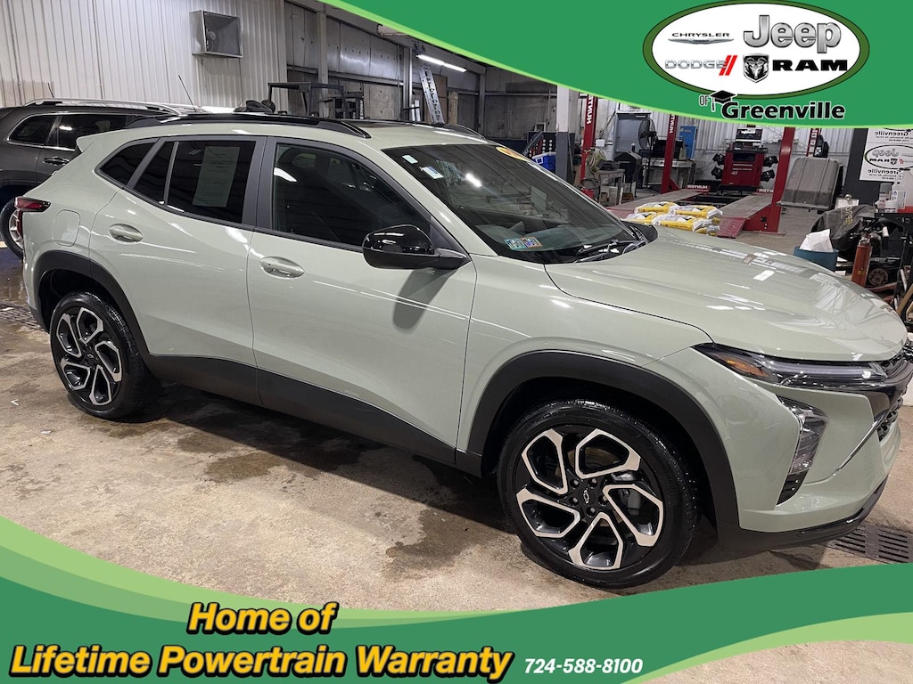 This 2024 Chevrolet Trax 2RS has a beautiful Cacti Green exterior with Jet Black with Red accents interior. This vehicle has 29,023 miles has been thoroughly inspected by our factory trained service technicians and has been fully reconditioned for immediate delivery. We're happy to provide this Trax's CARFAX vehicle history report upon request as well.