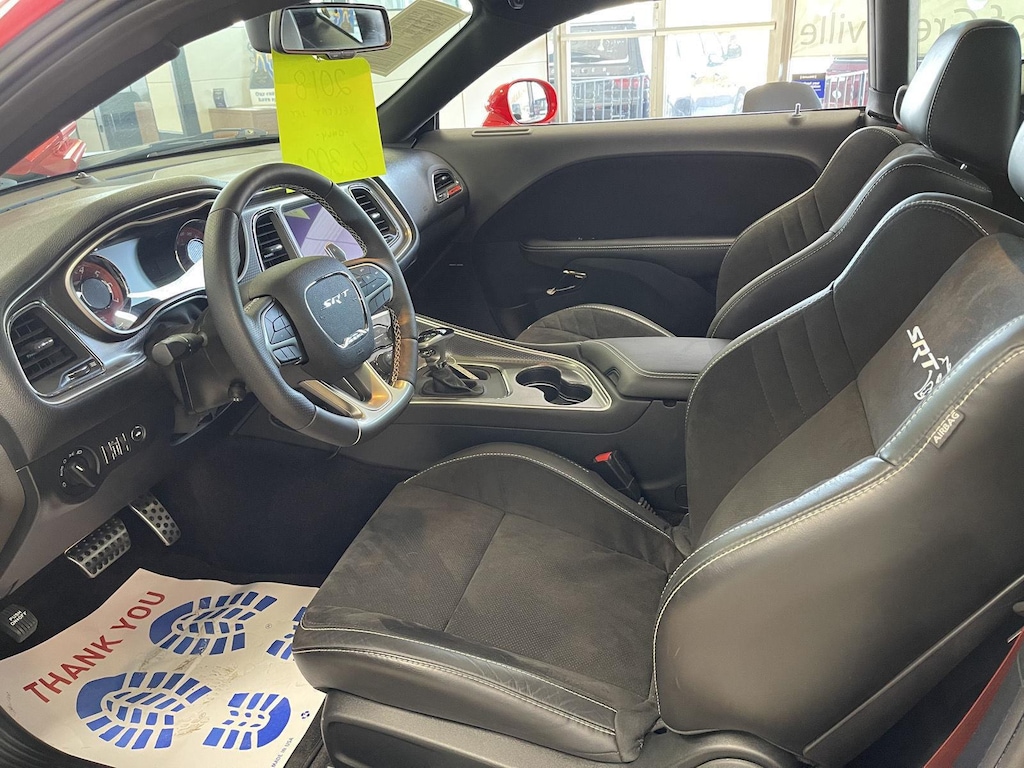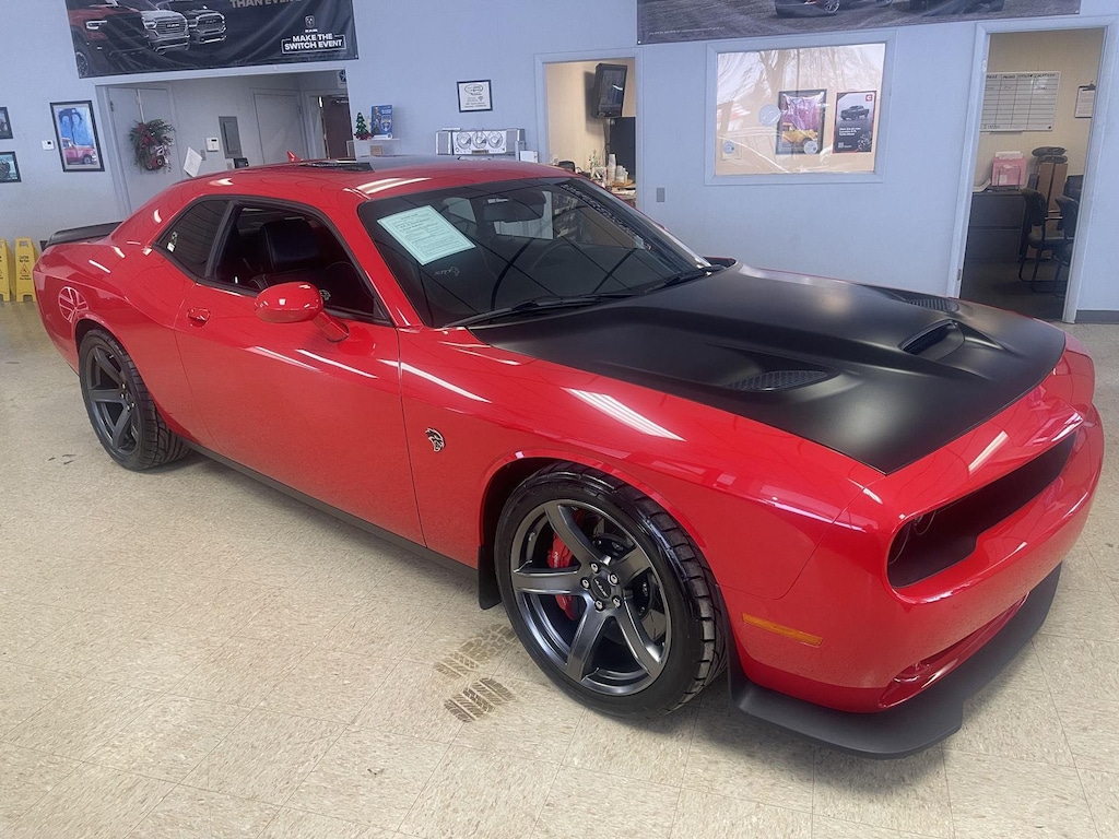 This 2018 Dodge Challenger SRT Hellcat has a beautiful Torred Clearcoat exterior with Black interior. This vehicle has 6,356 miles has been thoroughly inspected by our factory trained service technicians and has been fully reconditioned for immediate delivery. We're happy to provide this Challenger's CARFAX vehicle history report upon request as well.
