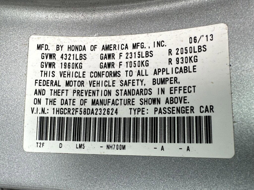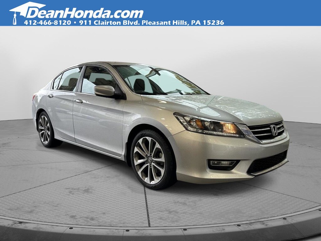 This 2013 Honda Accord Sdn Sport has a beautiful Alabaster Silver Metallic exterior with Black interior. This vehicle has 81,404 miles has been thoroughly inspected by our factory trained service technicians and has been fully reconditioned for immediate delivery. We're happy to provide this Accord Sdn's CARFAX vehicle history report upon request as well.