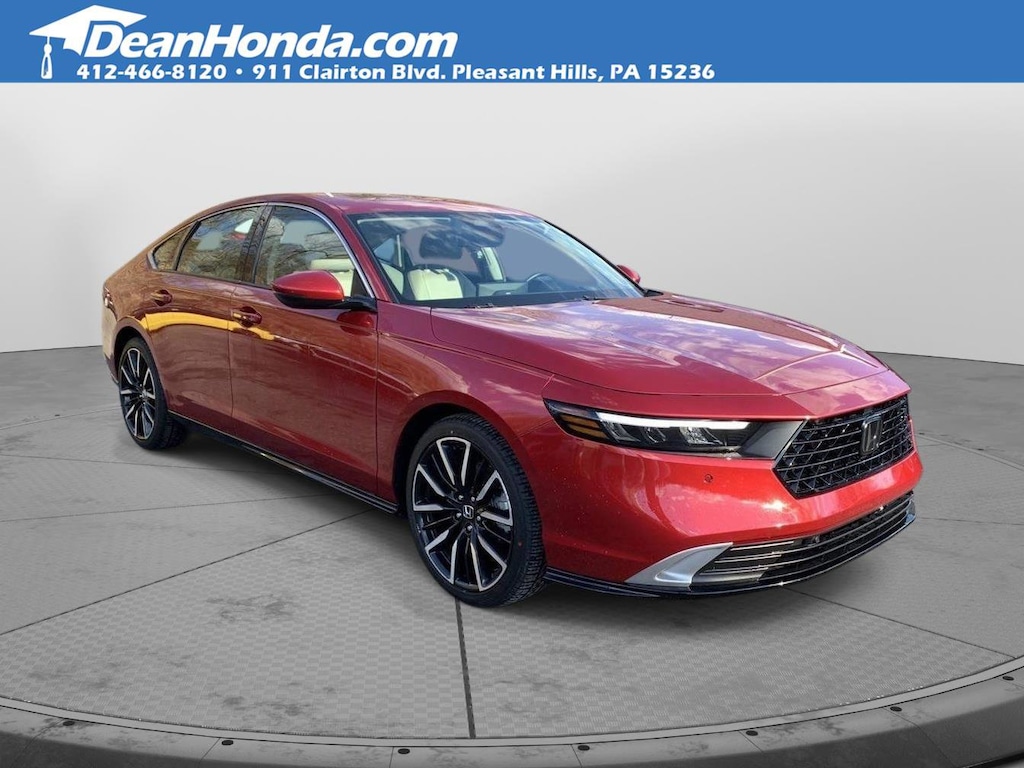 This 2023 Honda Accord Hybrid Touring has a beautiful Radiant Red Metallic exterior with Gray interior. This vehicle has 17,998 miles has been thoroughly inspected by our factory trained service technicians and has been fully reconditioned for immediate delivery. We're happy to provide this Accord Hybrid's CARFAX vehicle history report upon request as well.