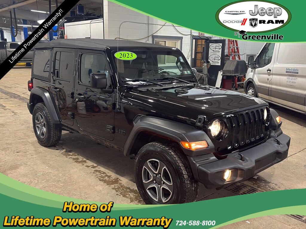 This 2023 Jeep Wrangler Sport S has a beautiful Black Clearcoat exterior with Black interior. This vehicle has 46,993 miles has been thoroughly inspected by our factory trained service technicians and has been fully reconditioned for immediate delivery. We're happy to provide this Wrangler's CARFAX vehicle history report upon request as well.