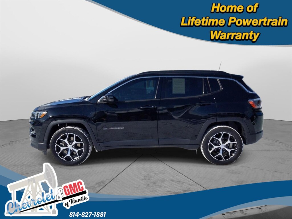 At Chevrolet and GMC of Titusville we believe that your car buying experience should be an enjoyable one. Its our goal to exceed your expectations in every way so that each and every time your family needs a car or truck, you know exactly where to go. We set out to accomplish that by staying firmly rooted in our values of integrity and professionalism in order to provide you with a truly superior customer service experience. A proud member of the Dean Auto Group, were sure youll find the quality new or used vehicle you want from the manufacturers you love! Find exactly what youre looking for at a price that makes you smile... This 2024 Jeep Compass Limited has a beautiful Diamond Black Crystal Pearlcoat exterior with Black interior. This vehicle has 6,148 miles has been thoroughly inspected by our factory trained service technicians and has been fully reconditioned for immediate delivery. We're happy to provide this Compass's CARFAX vehicle history report upon request as well. Carfax No Accidents! Carfax One Owner! IMPORTANT PACKAGE INFORMATION Quick Order Package 29G Limited Comfort Heated steering wheel - A warm touch. Trying to drive with bulky winter gloves on isn't always easy. Keep your hands warm in cold temperatures so you can ditch the mitts and get a firm grip with this heated steering wheel.Convenience Smart device and keyfob engine start control - Phone ahead. Remotely start your vehicle's engine from the key fob or your smart device, ensuring your ride is ready to go when you get in. Now you can stay comfortable inside while your vehicle gets comfortable outside, ,thanks to Smart device and Keyfob engine start control. Smart device and keyfob engine start control - Phone ahead. Remotely start your vehicle's engine from the key fob or your smart device, ensuring your ride is ready to go when you get in. Now you can stay comfortable inside while your vehicle gets comfortable outside, ,thanks to Smart device and Keyfob engine start control. Keyfob engine start control - Get an early start. Remotely start your vehicle's engine from the key fob, ensuring your ride is ready to go when you get in. Now you can stay comfortable inside while your vehicle gets comfortable outside, thanks to Keyfob engine start control.Safety and Security Blind spot warning - Protect your blind side. You checked the mirror, looked over your shoulder and still nearly collided with the car next to you. Blind spot warning alerts you to the presence of a vehicle to your sides or rear so you know if you're about to make an unsafe lane change. Replace fear and uncertainty with confidence and safety with blind spot warning. ENGINE: 2.0L I4 DOHC DI TURBO W/ESS, TRANSMISSION: 8-SPEED AUTOMATIC 8F30, QUICK ORDER PACKAGE 29G LIMITED, WHEELS: 18" X 7" PAINTED DIAMOND CUT ALUMINUM, TIRES: 225/55R18 BSW AS, MONOTONE PAINT APPLICATION, DIAMOND BLACK CRYSTAL PEARLCOAT, BLACK, LEATHERETTE SEATS We value-price our vehicles to assure our customers get an easy & notable car buying experience. With every New & Pre-Owned purchase you become part of our Chevrolet and GMC of Titusville family, and being a family member has benefits: 1. Complimentary PA State Inspections for the Life of the Vehicle (dealer covers inspection fee, customer responsible for applicable sticker fees) 2. $100 gift card 3. Lifetime Powertrain Warranty (some exclusions apply) 4. Complimentary 21-point inspection and safety check for the life of the vehicle with ANY service appointment *Valid for vehicles purchased after 1/1/2025. **Offers not redeemable for cash. Due to heavily discounted market based pricing, vehicles are selling more quickly than our website updates. To verify availability on this vehicle please contact our client care team at 814-826-3375. Let us show you the difference in how we do things!