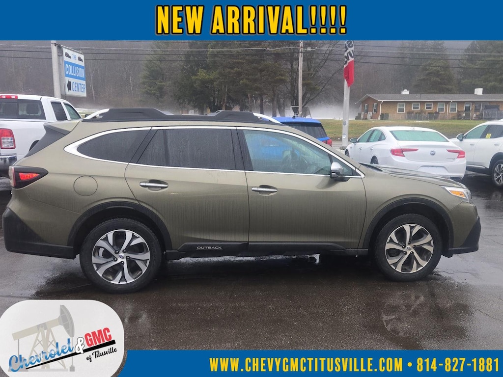 At Chevrolet and GMC of Titusville we believe that your car buying experience should be an enjoyable one. Its our goal to exceed your expectations in every way so that each and every time your family needs a car or truck, you know exactly where to go. We set out to accomplish that by staying firmly rooted in our values of integrity and professionalism in order to provide you with a truly superior customer service experience. A proud member of the Dean Auto Group, were sure youll find the quality new or used vehicle you want from the manufacturers you love! Find exactly what youre looking for at a price that makes you smile... This 2022 Subaru Outback Touring has a beautiful Autumn Green Metallic exterior with Java Brown interior. This vehicle has 55,718 miles has been thoroughly inspected by our factory trained service technicians and has been fully reconditioned for immediate delivery. We're happy to provide this Outback's CARFAX vehicle history report upon request as well. Carfax One Owner! IMPORTANT PACKAGE INFORMATION Standard ModelTech Package 2 ($937 value)Dome Light LED UpgradeWireless ChargerWoodgrain Interior Trim KitAuto-Dimming Exterior Mirror with Approach Light Safety and Security Forward collision mitigation - Forward thinking. You look away for just a second and suddenly the vehicle in front of you has stopped. That's when the forward collision mitigation system comes to life. When it senses an impending impact, it will activate a combination of features to help prevent or reduce the severity of an accident. Forward collision mitigation is always looking ahead. Pedestrian impact prevention - An extra step toward safety. Pedestrians don't always stop, look, and listen, but with Pedestrian Impact Prevention, your vehicle is equipped to better see them and avoid them. This system constantly monitors the road ahead to identify and track pedestrians. It projects that image to an interior display screen, AND should an impact become likely, Pedestrian impact prevention takes steps to avoid a collision. Hands-on cruise control. Set it and forget it. Road trips used to be stressful. Cruise control only managed speed, but not distance or safety. Now, with hands-on cruise control, simply set your desired speed and let sensor technology maintain a safe distance between you and surrounding vehicles. It slows you down; speeds you up and even keeps you in your own lane. Meet your ultimate co-pilot with hands-on cruise control. Rear camera with washer - Watching your back! The rear camera helps you see obstacles and hazards you otherwise couldn't by showing enhanced images of what is behind you. Even if there are sloppy conditions, the washer keeps the camera's view clean. Rear camera with washer is an extra set of eyes that's both convenient and safeTechnology and Telematics Smart device mirroring - Smartphone, meet smart car. You can control your device through your vehicle's infotainment system. Smart device mirroring brings together safety and convenience by making it easier to find what you're looking for while keeping your eyes on the road. STANDARD MODEL, AUTUMN GREEN METALLIC, JAVA BROWN, PERFORATED NAPPA LEATHER-TRIMMED UPHOLSTERY, TECH PACKAGE 2, ALL-WEATHER FLOOR LINERS We value-price our vehicles to assure our customers get an easy & notable car buying experience. With every New & Pre-Owned purchase you become part of our Chevrolet and GMC of Titusville family, and being a family member has benefits: 1. Complimentary PA State Inspections for the Life of the Vehicle (dealer covers inspection fee, customer responsible for applicable sticker fees) 2. Lifetime Powertrain Warranty (some exclusions apply) 3. Complimentary 21-point inspection and safety check for the life of the vehicle with ANY service appointment *Valid for vehicles purchased after 1/1/2025. **Offers not redeemable for cash. Due to heavily discounted market based pricing, vehicles are selling more quickly than our website updates. To verify availability